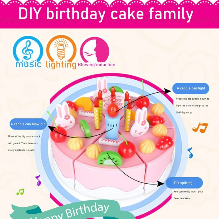 Tiitstoy Children S Play House Birthday Cake 1 6 Years Old Boys And Girls Toys Cut Music Sound And Light Music Cake 38 Pieces Set Pink Walmart Com